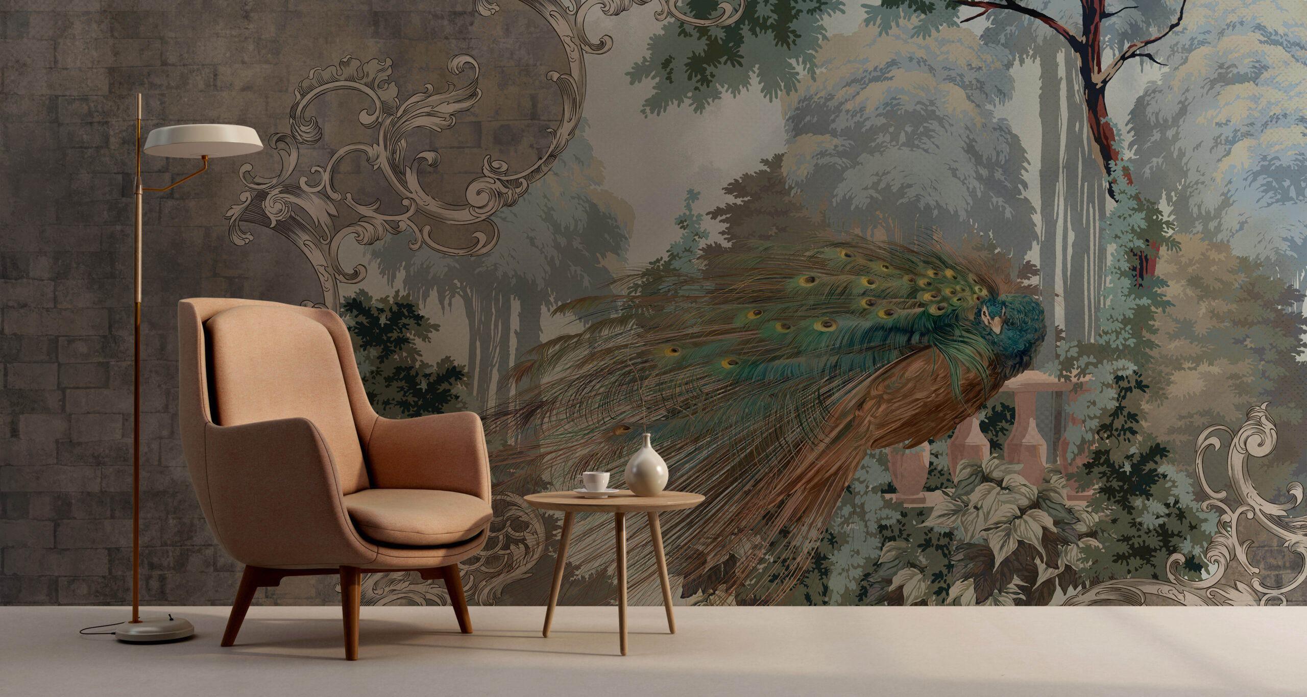 Fototapeta Paun na zidu originalni je ukras za vaš dnevni boravak, spavaću sobu ili dječju sobu.