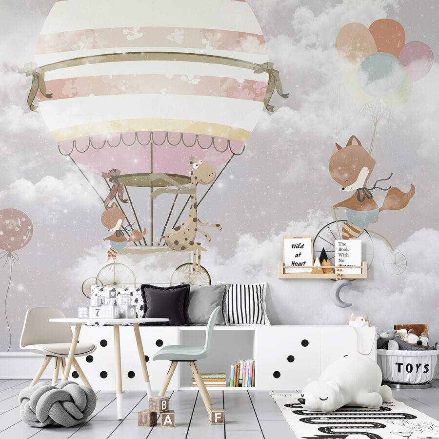 **Zidni mural balon ide na putovanje – šareni ukras za dječju sobu**