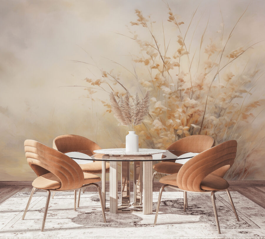 Motiv maglovitog krajolika u prirodnim nijansama sive i bež boje omogućuje vam stvaranje mirne, uravnotežene pozadine koja ne preplavljuje interijer, a istovremeno privlači pažnju.