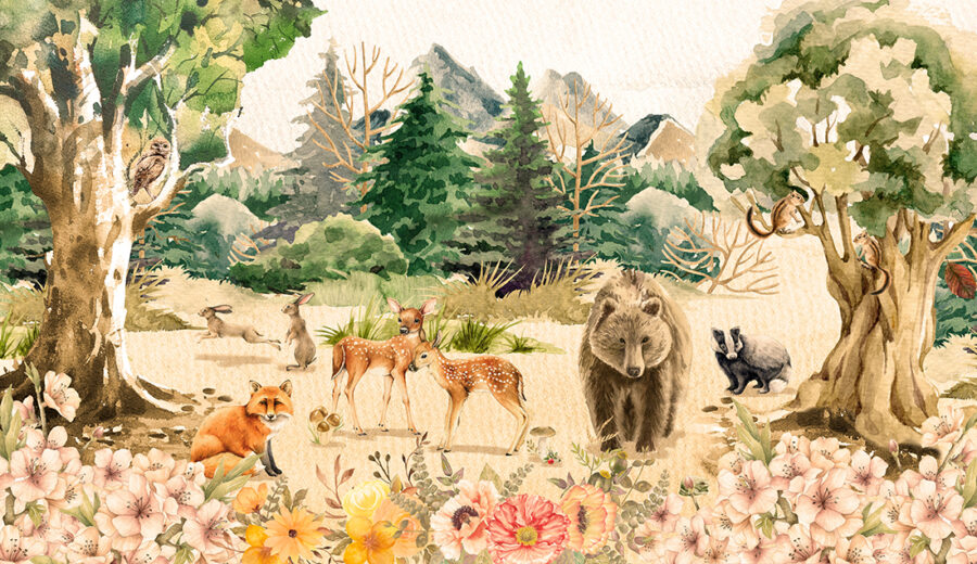 Uronite u začarani svijet pun šumskih prijatelja! Zidni mural „Šumski kutak” prekrasan je ukras za dječju sobu koji mališana prenosi u mirnu šumu – punu drveća, životinja i tople atmosfere. Šarmantne ilustracije u stilu akvarela stvaraju ugodnu pozadinu za svakodnevnu igru, čitanje bajki i spavanje.