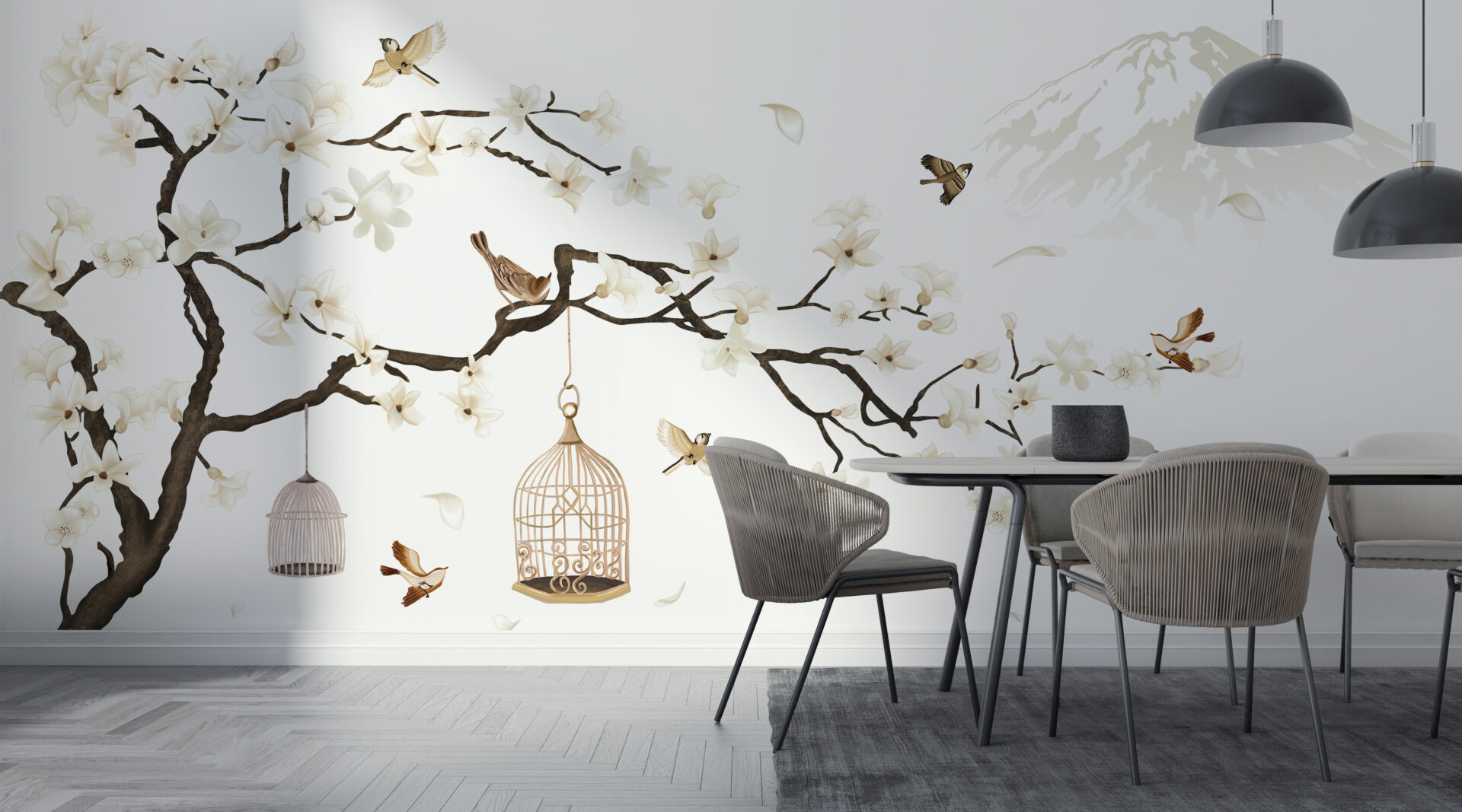 Premjestite se u čarobni vrt pun trešnjinih cvjetova u proljeće s ovim šarmantnim zidnim muralom Cvijet trešnje.