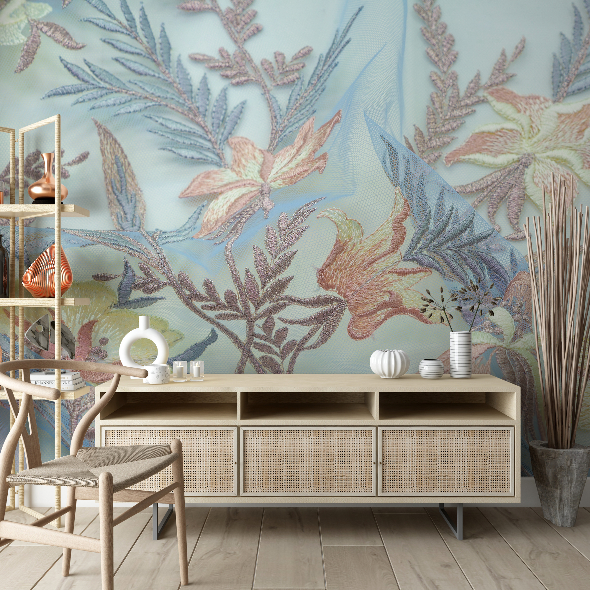 Nježno, vezeno cvijeće na pozadini nježnih boja bit će savršena nadopuna modernim i klasičnim aranžmanima. Visoka kvaliteta: Fototapete izrađene su od visokokvalitetnih materijala, što jamči trajnost i otpornost na oštećenja.