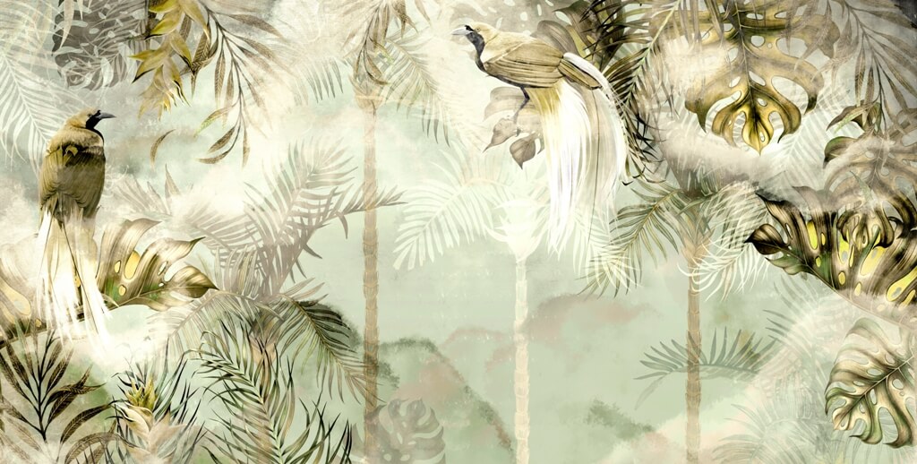 Zidni mural Zlatna džungla izvanredan je dodatak svakom interijeru koji će vas odvesti na egzotično putovanje u čarobnu džunglu.
