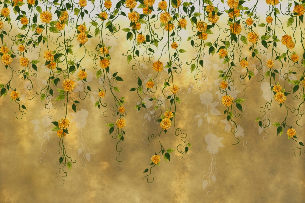 Zlatni cvjetovi na žutoj pozadini stvorit će ugodnu i toplu atmosferu koja će vašem interijeru odmah dodati šarm i eleganciju.