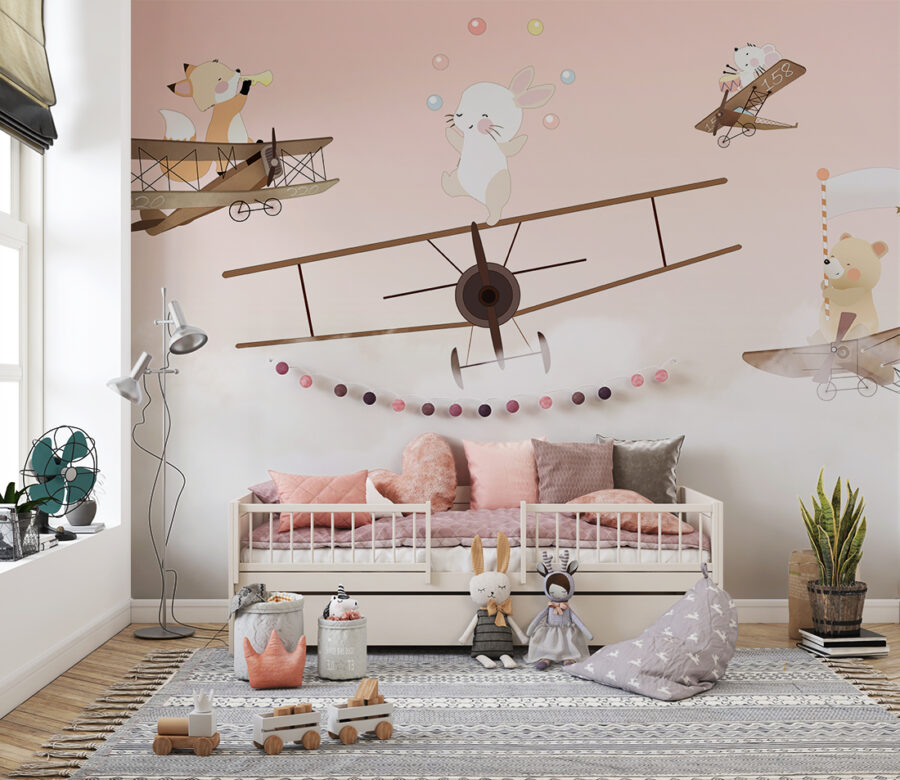 **Zidni mural Životinje u avionima – šarena avantura u dječjoj sobi**