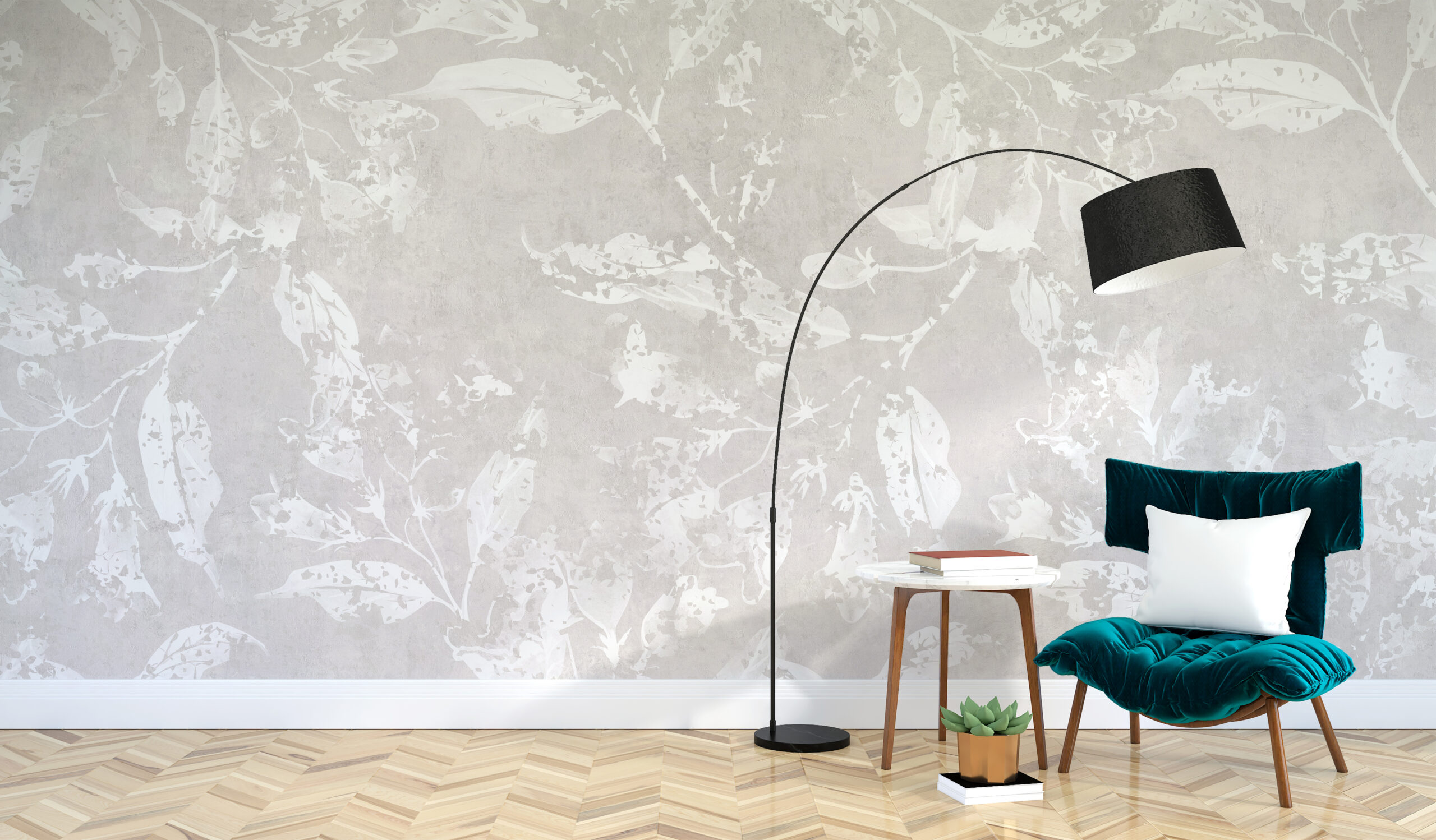 Ovaj zidni mural prikazuje apstraktne, zamagljene listove koji odaju dojam delikatnosti i lakoće.