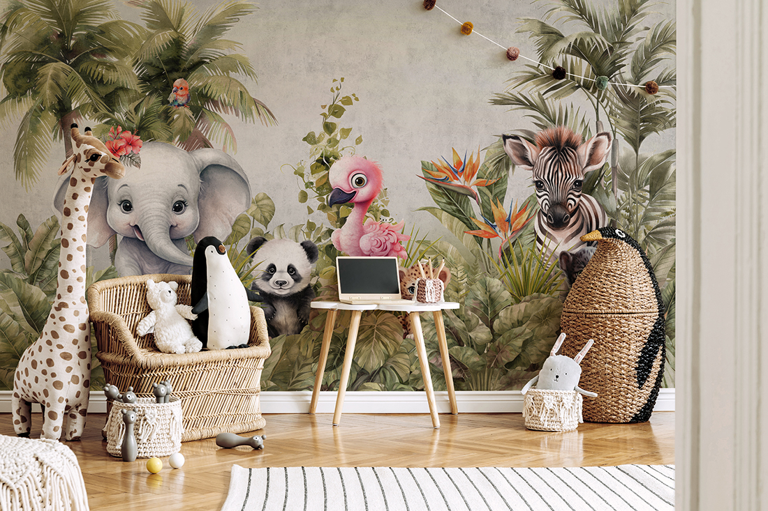 Foto tapeta „Životinje u džungli” – šareni svijet prirode u dječjoj sobi